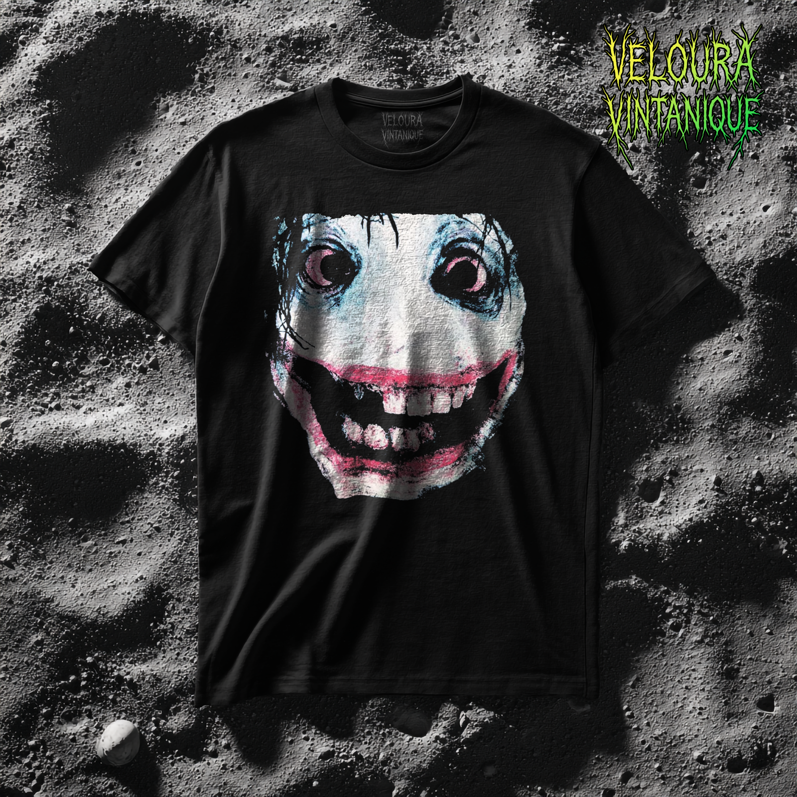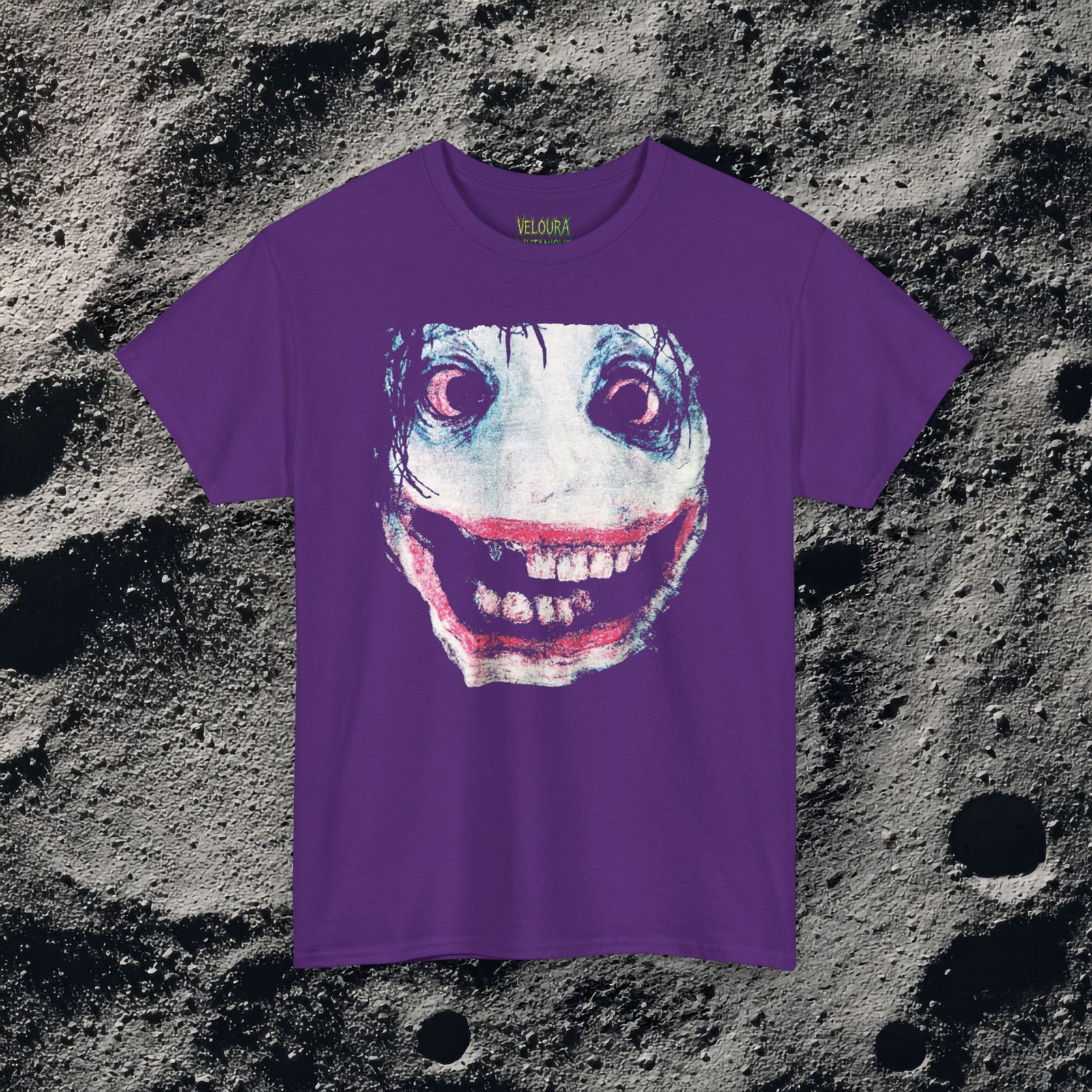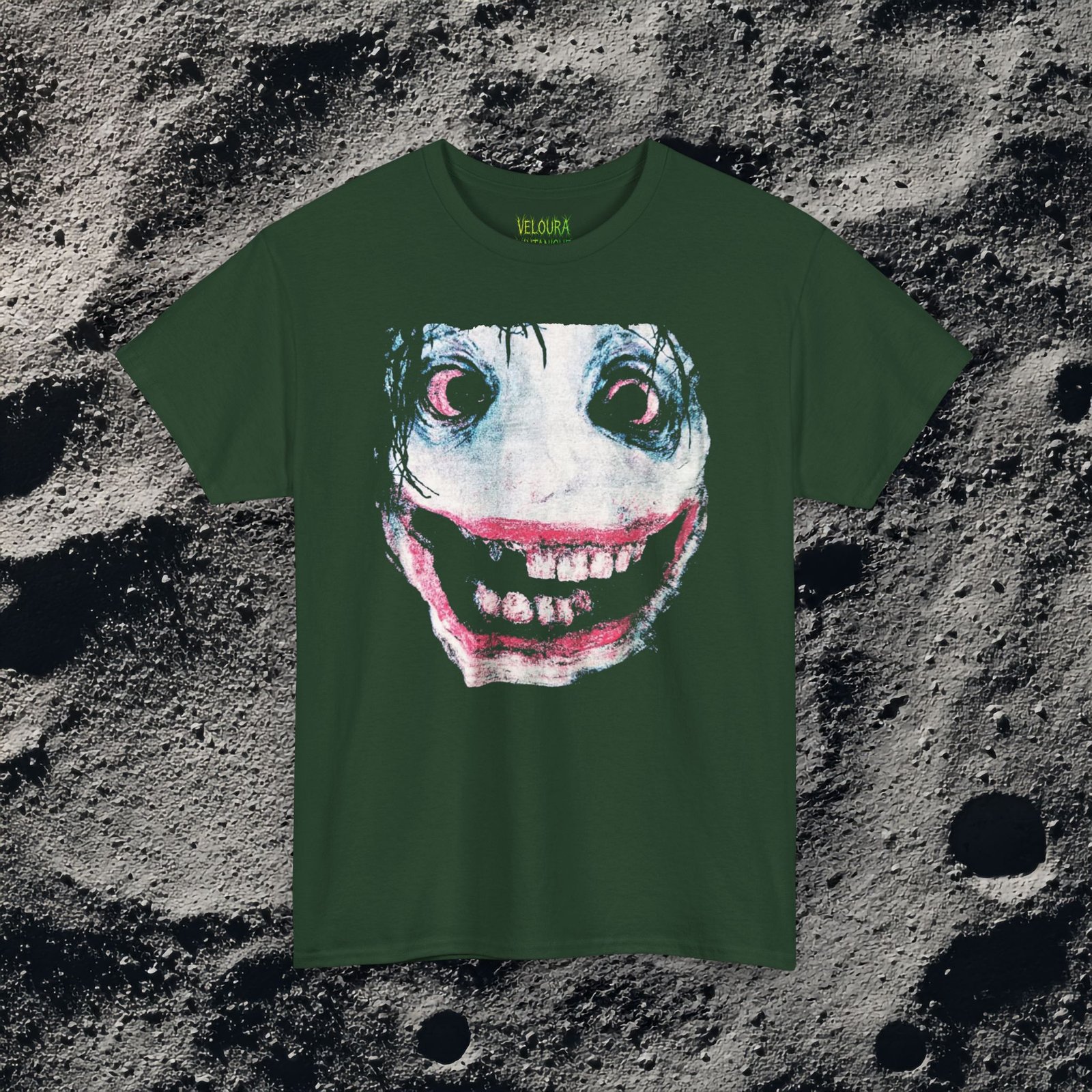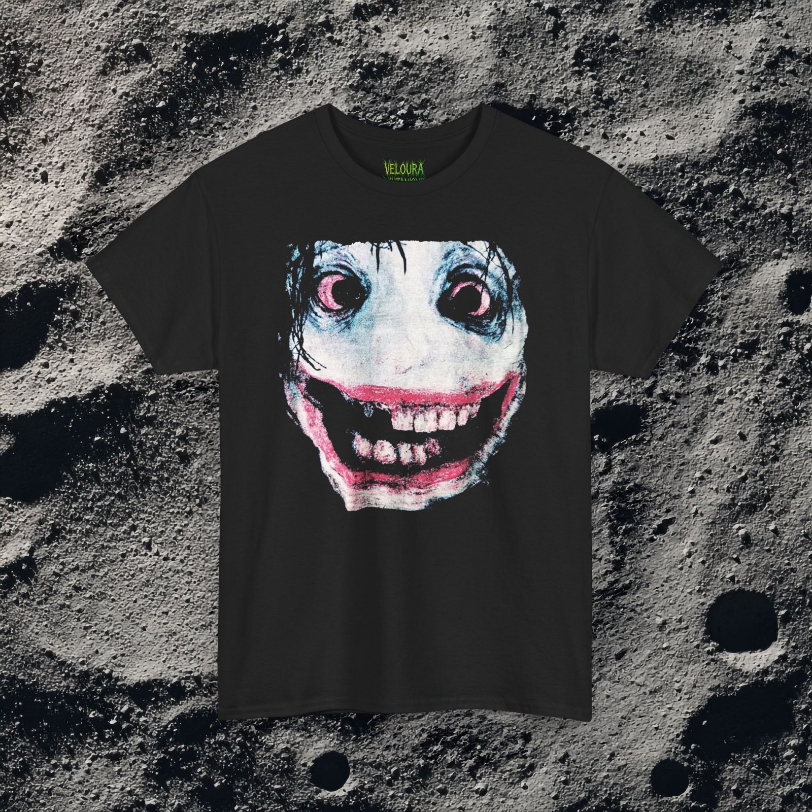 This creepy tee delivers pure surreal horror energy with a bold, disturbing face design.