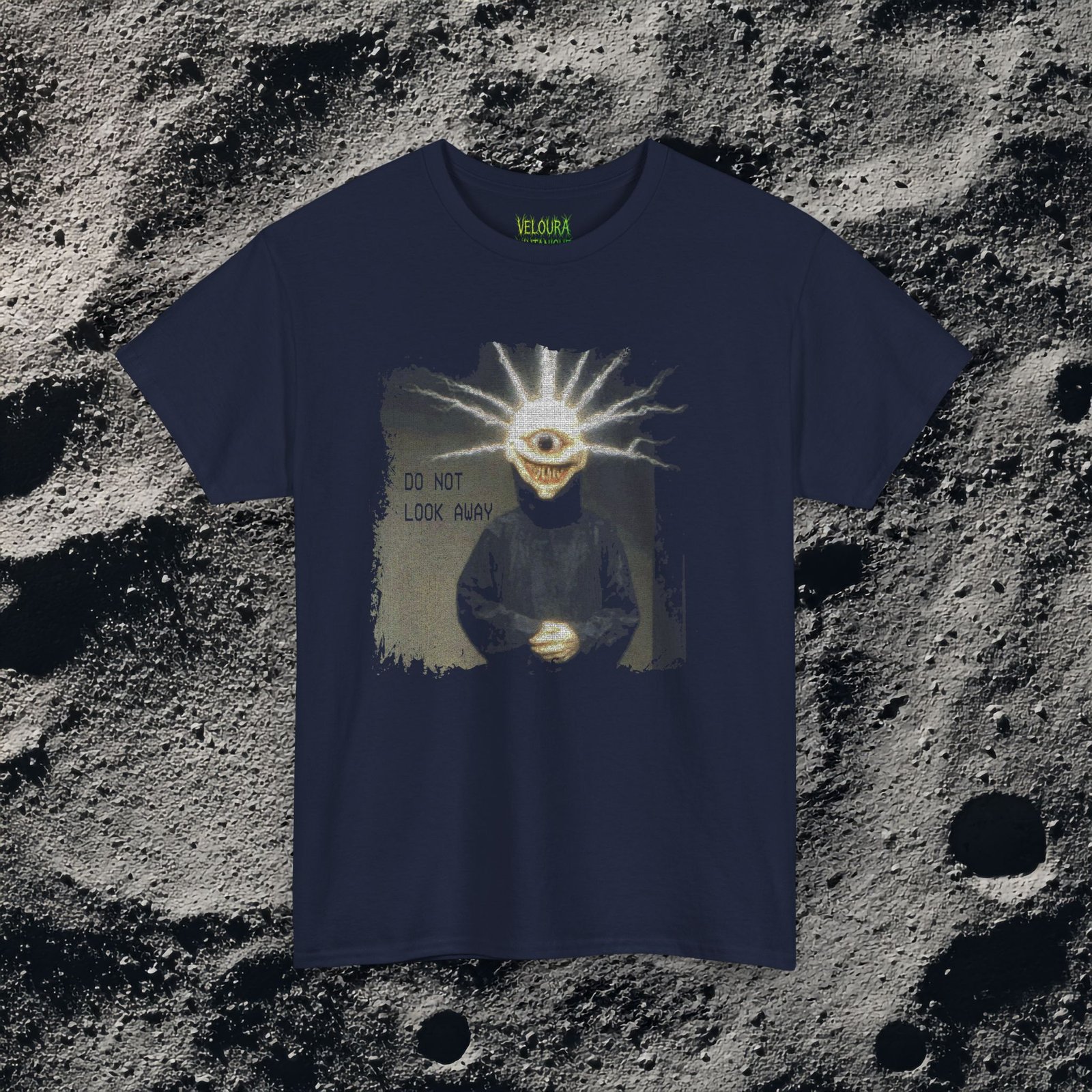 Analog horror shirt featuring a creature that appears when a television has been connected to a power source for too long, rare but possible. It is formed from electricity and emerges directly from the TV cord the moment it’s unplugged from the wall.Do Not Look Away Electric Analog Horror Creature