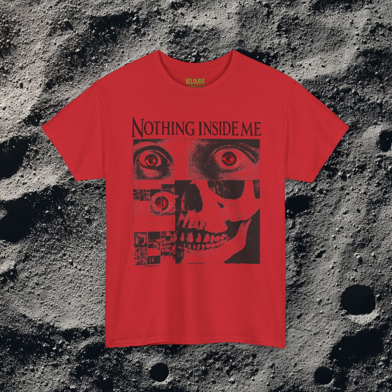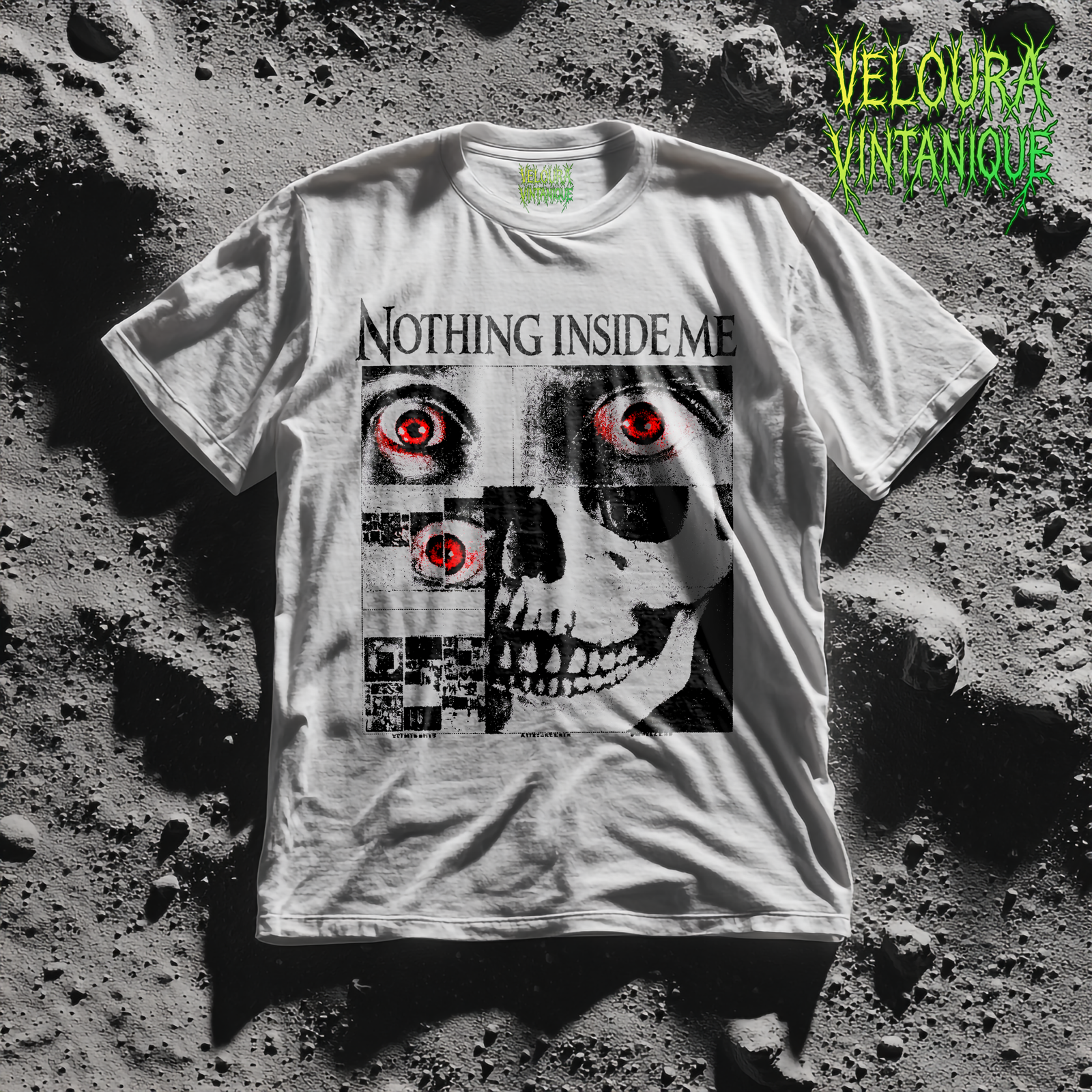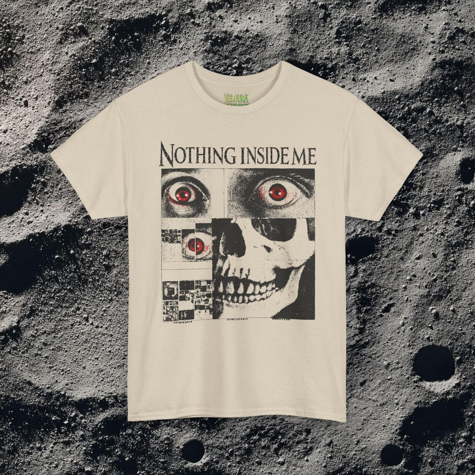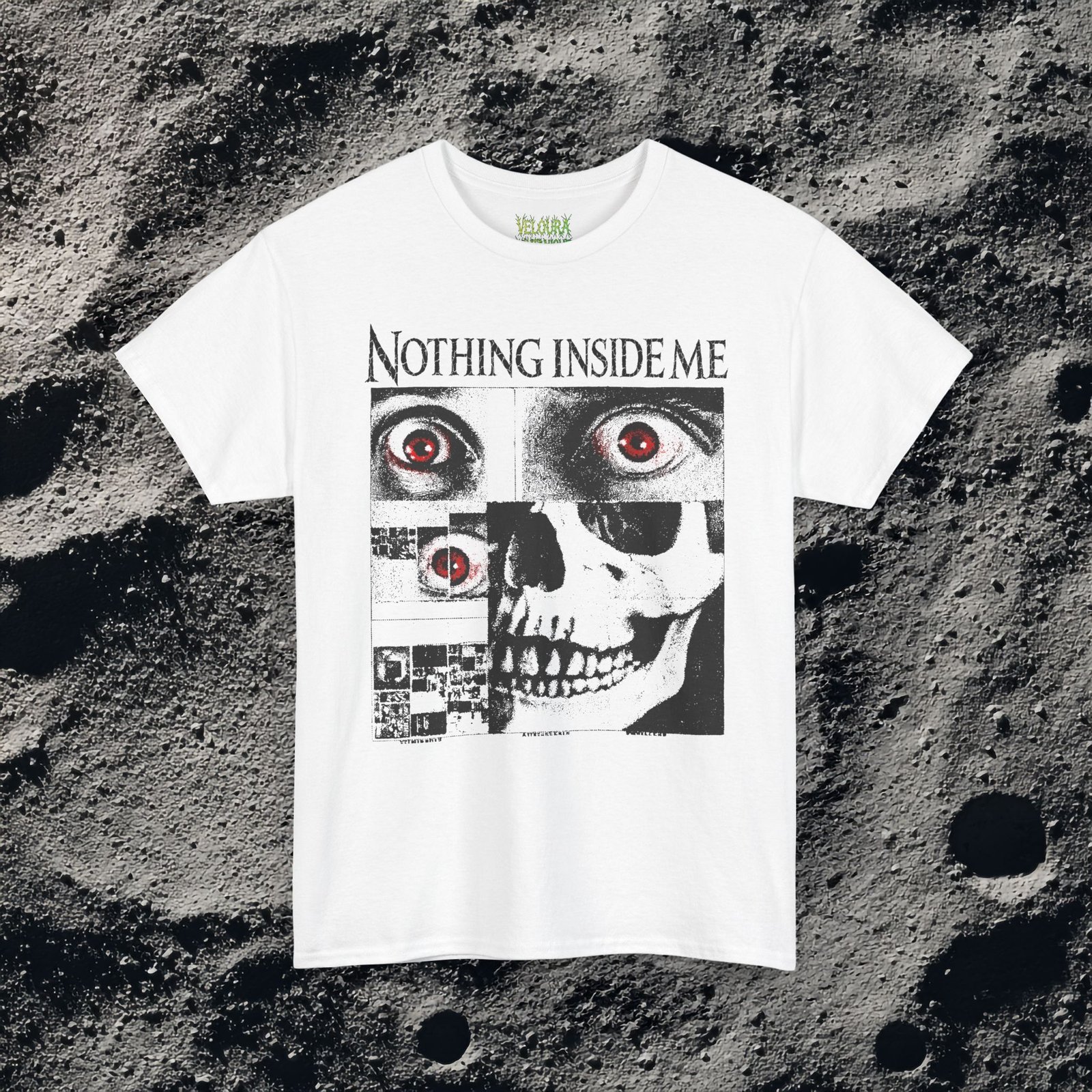 This dark surreal horror tee delivers raw, unsettling energy with a bold glitch skull design.